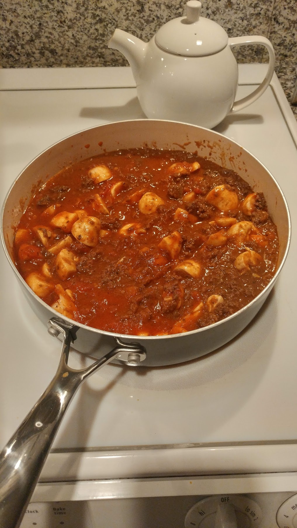 Venison stew in tomato sauce with mushrooms