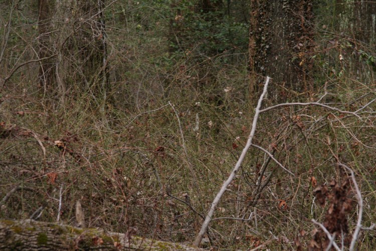 Then, we turned around and left the fenced area to go back to the gravel parking lot. From there, we headed down the trail that led into Sandy Point State Park. The three of us were surprised when we startled a group of three deer who were bedded down in the brush.