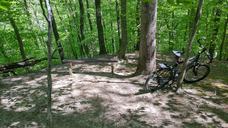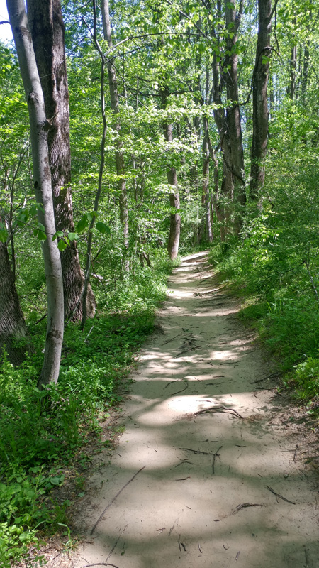 This morning was cool, clear and sunny – perfect for a bike ride. I spent 2 hours on the Bacon Ridge trails in Crownsville, riding from the Phase 1 section north into the Phase 2 section, starting at the Hawkins entrance (see Alltrails). The further north I went, the more challenging the trails became, with large peaks and valleys, roots and tight turns. The trails are well maintained and traffic with other hikers and bikers was light all during my ride from 10:30 am to 12:30 pm.