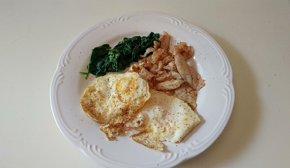 The next morning, I had a tasty breakfast of fish, eggs and spinach. All seasoned with, what else, Old Bay.