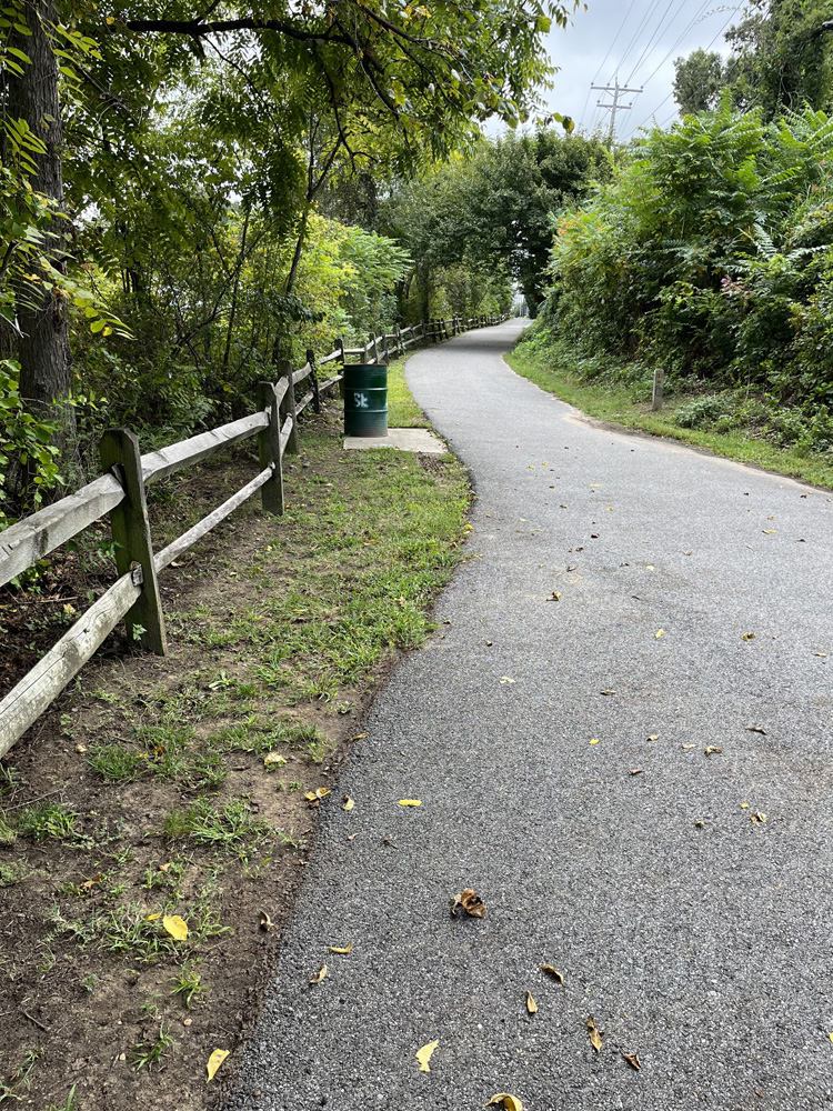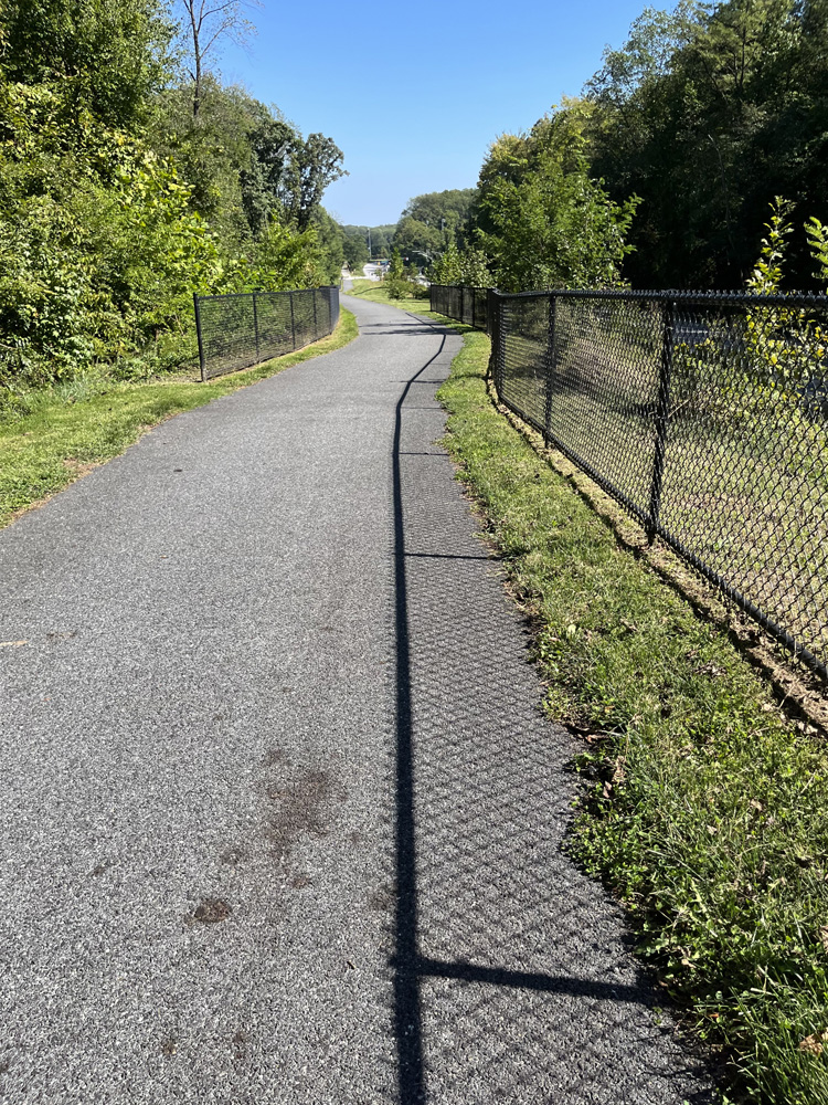 I started on the Broadneck Peninsula Trail in Cape St. Claire, which is still under construction and scheduled to be completed in the spring of next year. At this time, there are two different ways to connect to the B&A Trail from here: one is to cut up through Church Road to Arnold Station, the second is to keep straight on College Parkway to Jones Station. With both road routes, cutting back through the Bay Hills Community from the current end of the trail and then up Shore Acres Road back to College Parkway will help avoid some dangerous road riding. This time, I stayed on College Parkway instead of riding on Church Road. Staying on College Parkway is my least favorite of the two road routes, because the shoulder on College Parkway fluctuates between wide and nonexistent. College Parkway is not a safe road to bike on, which is likely one of the reasons why the county is constructing the Broadneck Peninsula Trail. The construction from Cape St. Claire to the B&A Trail at Jones Station is supposed to be completed by the spring of 2024, and the phase from Cape St. Claire to Sandy Point State Park, on the Chesapeake Bay, is scheduled for a fall 2024 completion. Today, the unfinished trail is mainly used by locals – but when complete, it should rival the B&A Trail in popularity due to the connection to Sandy Point. I envision many dozens of cycling groups from all over Maryland and D.C. using the trail on the weekends. I can picture them speeding along the Broadneck Peninsula Trail from the B&A Trail or starting from different parking lots all along College Parkway – especially Anne Arundel Community College.