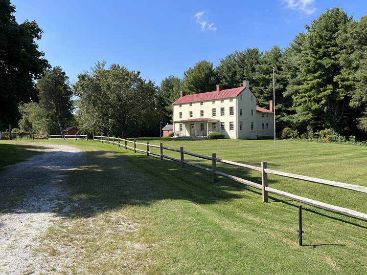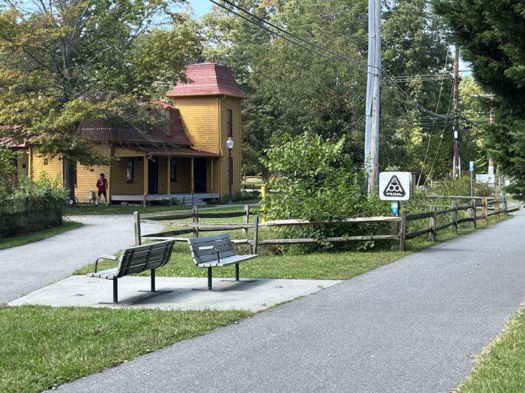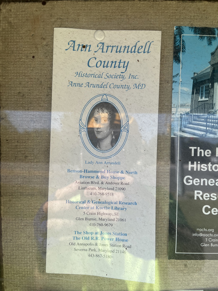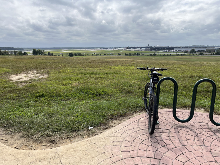 After a shady ride through the woods at the beginning of the BWI Trail, you reach the Thomas A. Dixon Jr. Aircraft Observation Area, which is a park with a nice playground and two porta-potties. This place is always buzzing with activity due to the popularity of watching aircraft land at BWI Airport. At this point, a cyclist begins the loop around the airport and will end up back at the John Overstreet Connector, which will take you back to the B&A Trail. Some interesting spots along the way include the airport overlook memorial bench area atop the large grassy hill, installed by the Friends of Anne Arundel County Trails, and just after this beautiful spot is the picturesque Andover Equestrian Center. The historic Benson Hammond House, which belongs to the Ann Arrundell County Historical Society Inc., is a little further along the trail from here and sits inside the airport loop behind an iron gate. If you noticed, yes, the spelling of the name “Ann Arrundell” is a touch different than Anne Arundel. According to the Historical Society, “In 1650, the Maryland Colony named its third county after the wife of Lord Baltimore. The colony’s records of that time show the name as Ann Arrundell. Over time, the name evolved to Anne Arundel county. Find out more about Lady Ann.” For the history buffs out there, we’ll observe that the colonial spellings of many ancient place names are often different than today. It can be confusing at times. A funny detail I noticed was the handsome sign outside the Benson Hammond House (see my photo) – even the sign maker got confused and left the second “r” off Arrundell.