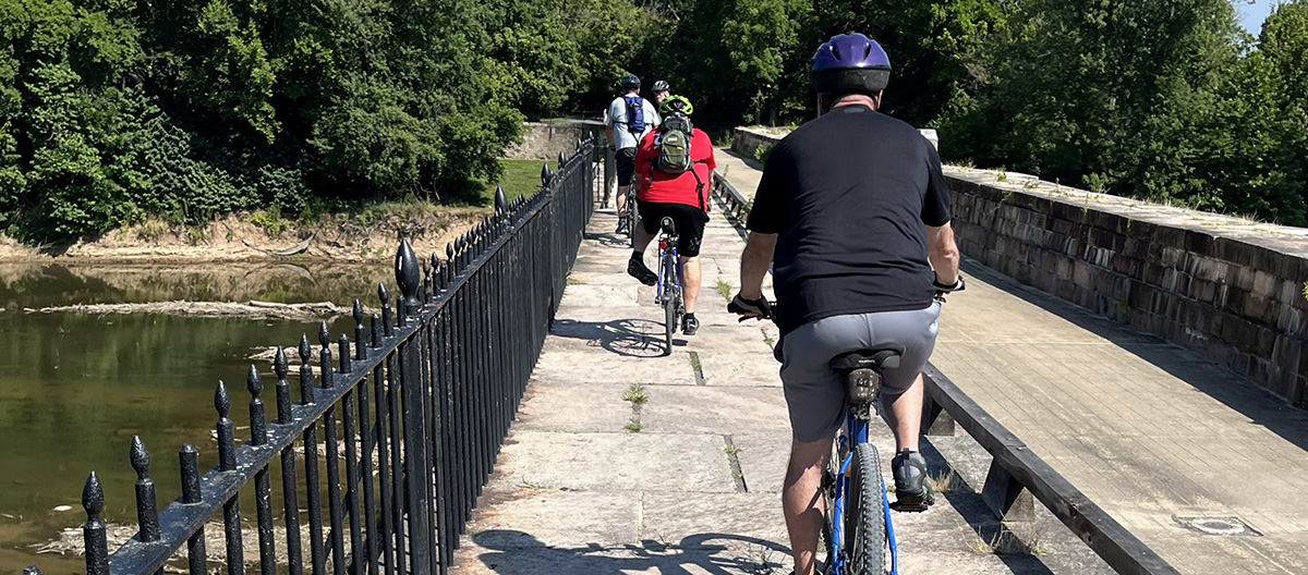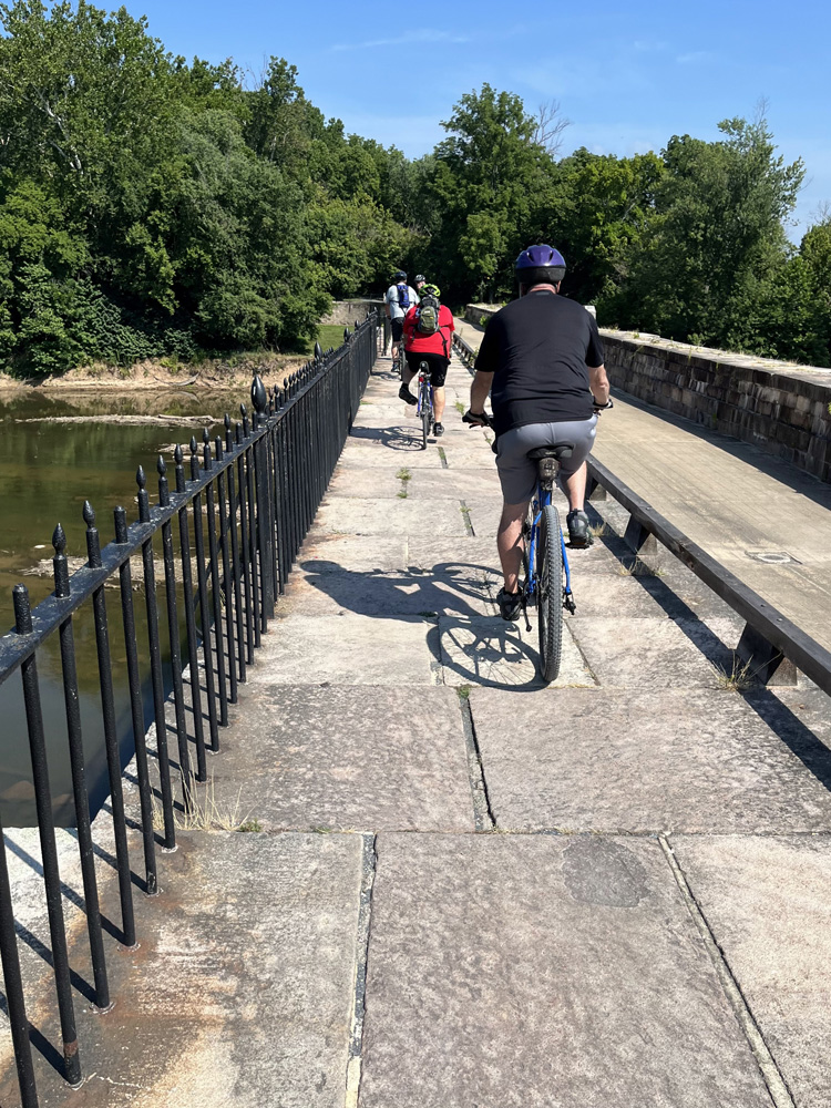 On Sunday July 21st, my mountain bike group hit the C&O Canal Trail once again to enjoy some challenging training time on one of our favorite trails. Our usual meeting place is Point of Rocks, but today instead of heading north to Harpers Ferry, we rode south to Monocacy Aqueduct, which was a round trip of just over 13 miles.