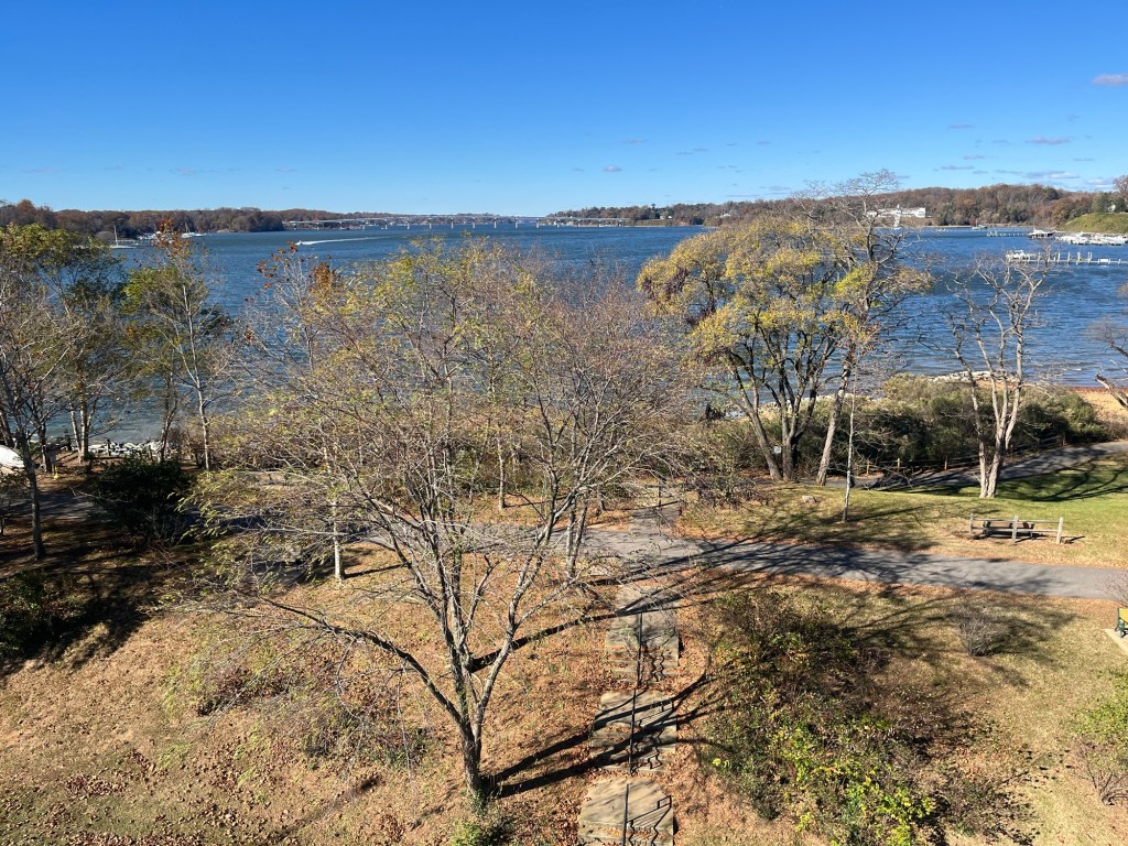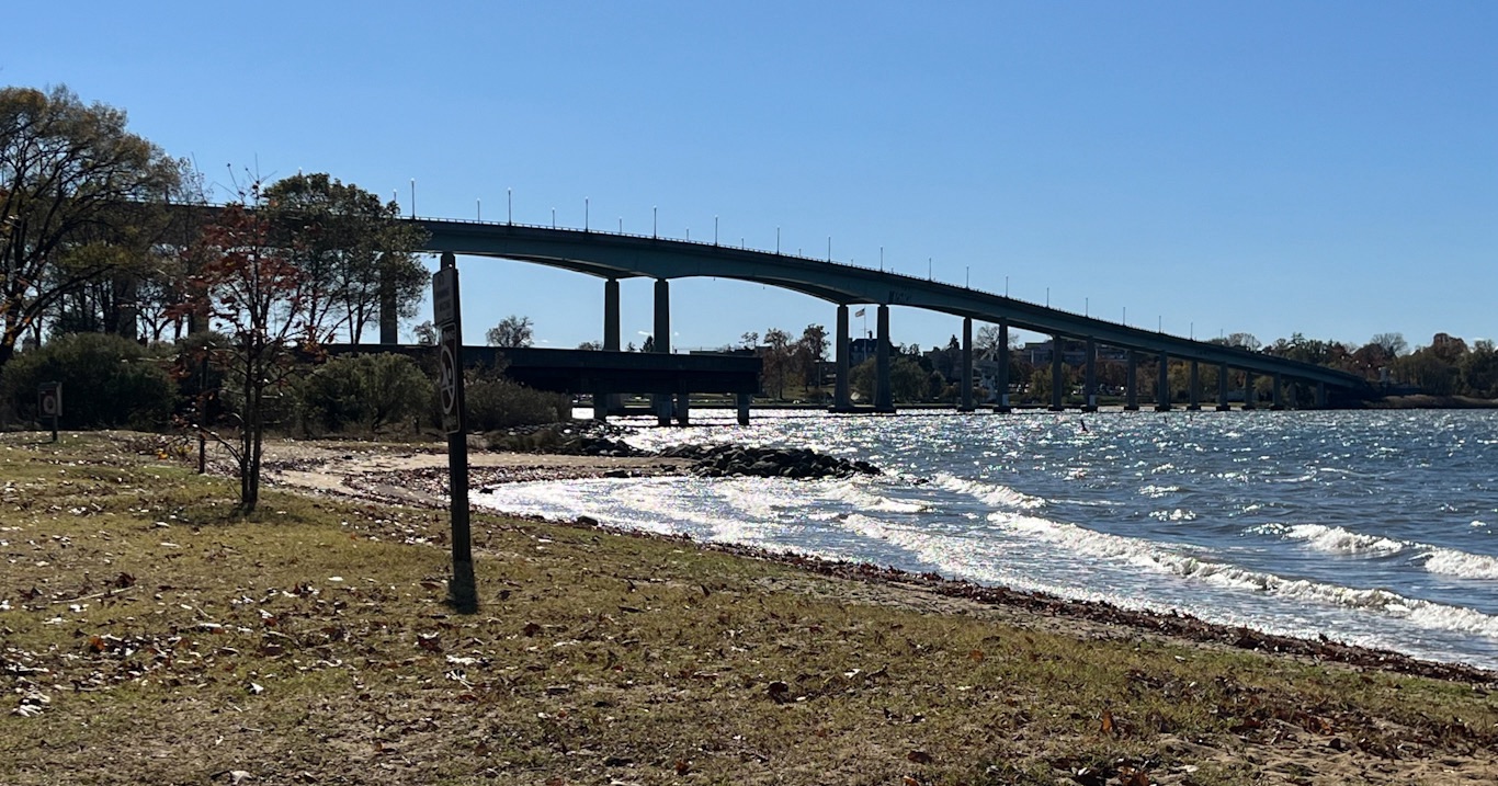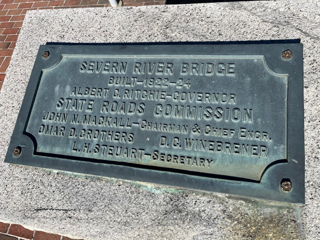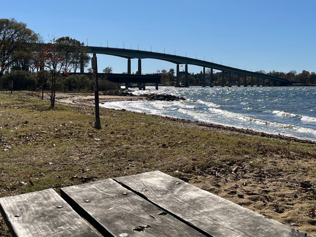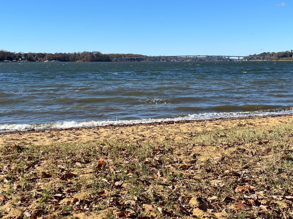 When we returned to the park, I took advantage of the large, clean restroom and had a peaceful sit on the sandy beach. Gazing across the Severn River at the other large bridge, called the “New” Severn River Bridge (or Pearl Harbor Memorial Bridge), is a relaxing treat. That large bridge spans the river for Route 50 and was built in 1952.